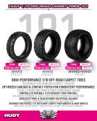 | Product | New HUDY 1/10 off-road carpet tires 101 | Dec. 17, 2025 | | Product | New HUDY Carbon Rear Wing Mount - 1/10 Electric (2) | Dec. 12, 2025 | | Product | New HUDY Mini Power Block 800W / 67 AMP | Dec. 11, 2025 | | Product | New HUDY Sanding drum | Nov. 27, 2025 | | Product | New HUDY Droop & Upstop Set-Up Tool | Nov. 26, 2025 | | Product | New HUDY Glue Tip Needles | Nov. 25, 2025 | | Product | New HUDY Carbon Tire Stick 1/10 On/Off-Road Wheels 4mm & 5mm Hole (4) | Nov. 05, 2025 | | Product | New HUDY 1/8 Off-Road Strike Wing – Black | Oct. 30, 2025 | | Product | New HUDY Universal Padded Open Hand Bag | Oct. 27, 2025 | | Product | New HUDY Universal Zipped Hand Bag | Oct. 24, 2025 | | Product | New HUDY Alu RC Fan 40mm - Bottom/Side Mount 2 Hole | Oct. 22, 2025 | | Product | New HUDY Alu Bullet Plug Black & Red w 5mm Golden Bullets – Set | Oct. 03, 2025 | | Product | New HUDY Alu Nut M4 with Serrated Flange | Sep. 30, 2025 | | Product | New HUDY Car Bag 1/10 | Sep. 18, 2025 | | Product | New HUDY Alu Set-Up Wheel for 1/12 & 1/10 Pan Car (2) | Sep. 15, 2025 | | Product | New HUDY Team Backpack XL | Sep. 11, 2025 | | Product | New HUDY Alu Nut 3-Pins Wheel Adapter - Front/Rear - 1/12 Pan Car | Sep. 05, 2025 | | Product | New HUDY 1/10 off-road dirt tires | Aug. 13, 2025 | | Product | New HUDY 1/10 Formula Foam Tires | Aug. 12, 2025 | | Product | New HUDY Tire Additive - Tire Gripper Hybrid | Jul. 03, 2025 |